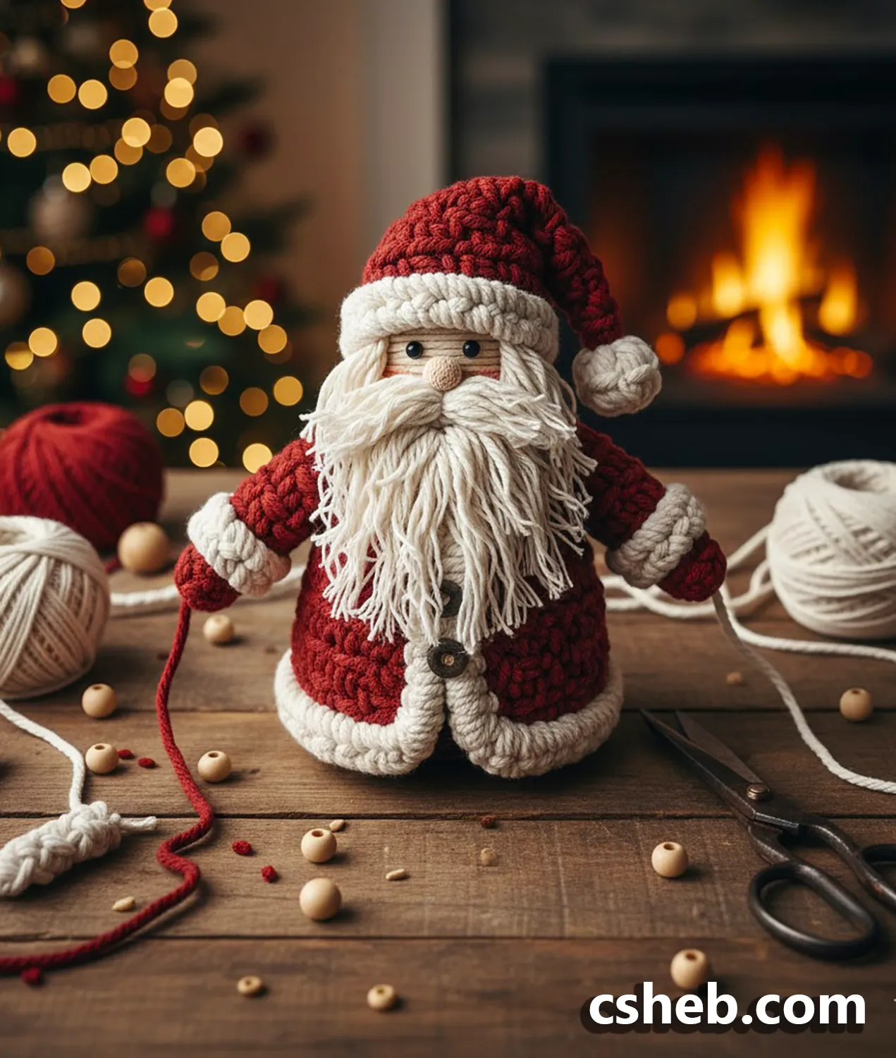 Texture Mixing: Place the smooth wooden ornaments next to the fluffy Santa beard. Hang the structured macrame wreath against a dark door or a wooden background to make the white cord pop.